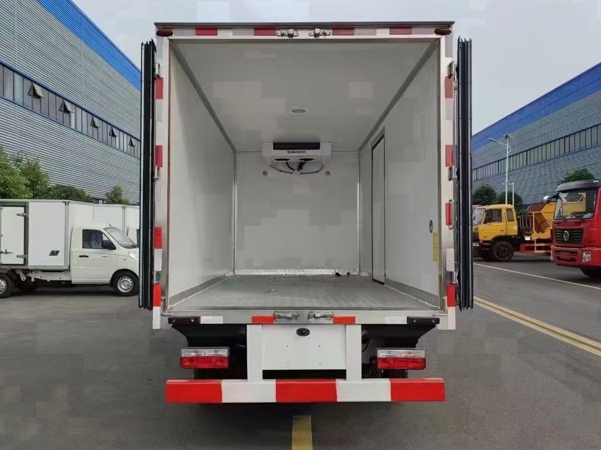 (2)廂板材質(zhì):內(nèi)外壁板選用國內(nèi)優(yōu)質(zhì)玻璃鋼(不吸光、隔熱性好、硬度強(qiáng)、抗氧化);中間保溫層為XPS擠塑聚笨板或聚氨酯;廂體厚度8CM。地板采用鋁花紋板,門邊條采用迷宮式橡膠密封條。