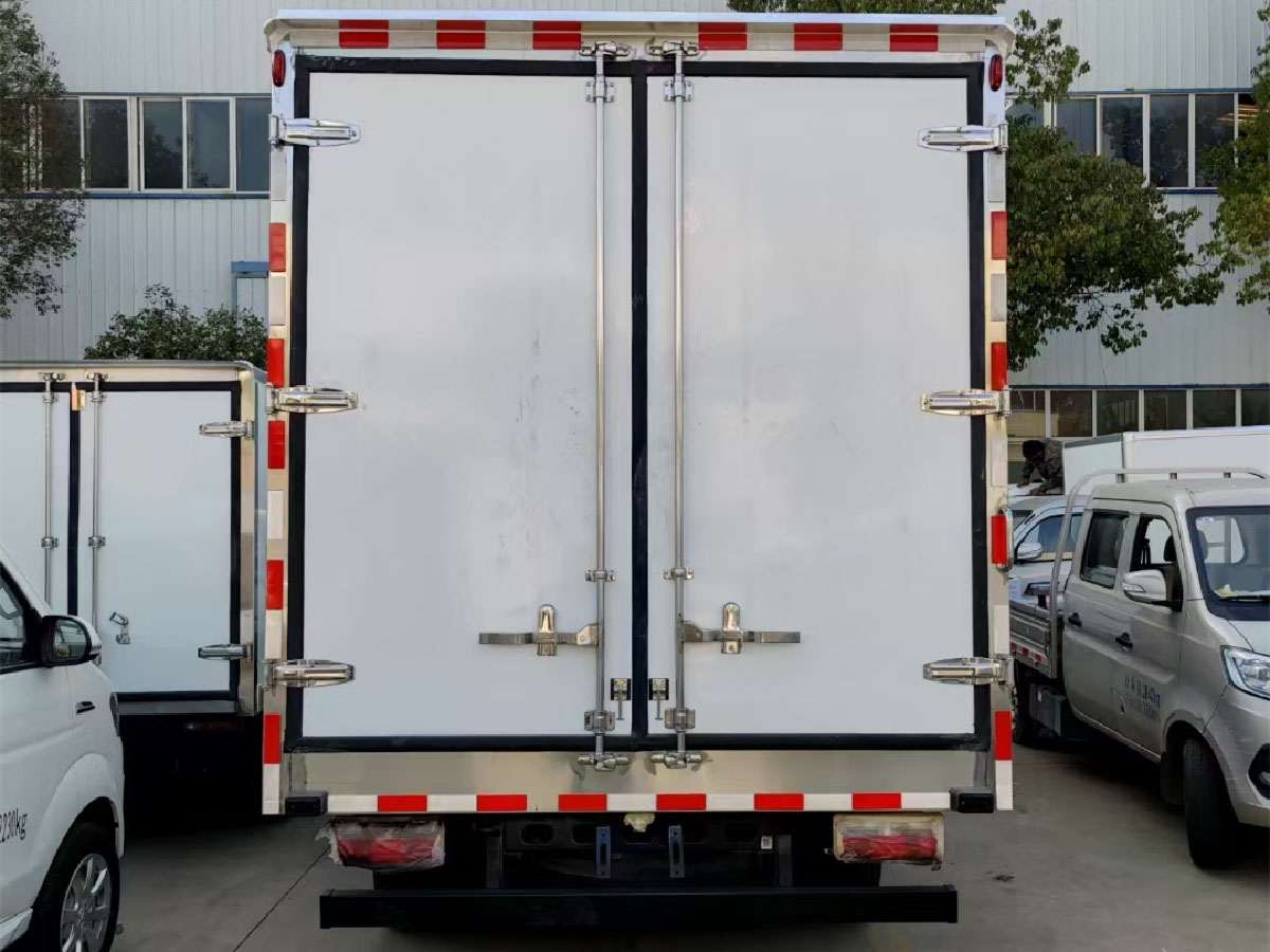 (2)廂板材質(zhì):內(nèi)外壁板選用國內(nèi)優(yōu)質(zhì)玻璃鋼(不吸光、隔熱性好、硬度強(qiáng)、抗氧化);中間保溫層為XPS擠塑聚笨板或聚氨酯;廂體厚度8CM。地板采用鋁花紋板,門邊條采用迷宮式橡膠密封條。
