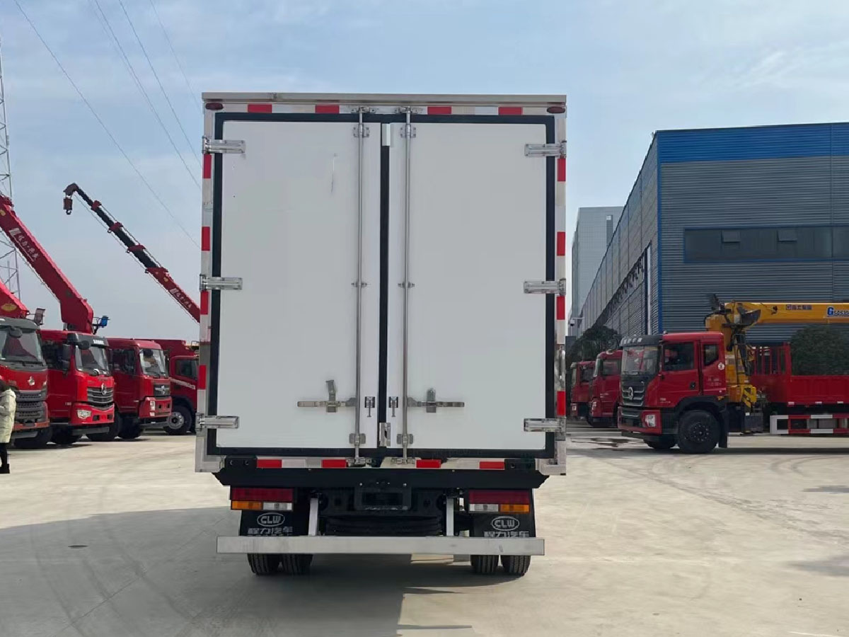 (2)廂板材質(zhì):內(nèi)外壁板選用國內(nèi)優(yōu)質(zhì)玻璃鋼(不吸光、隔熱性好、硬度強、抗氧化);中間保溫層為XPS擠塑聚笨板或聚氨酯;廂體厚度8CM。地板采用鋁花紋板,門邊條采用迷宮式橡膠密封條。
